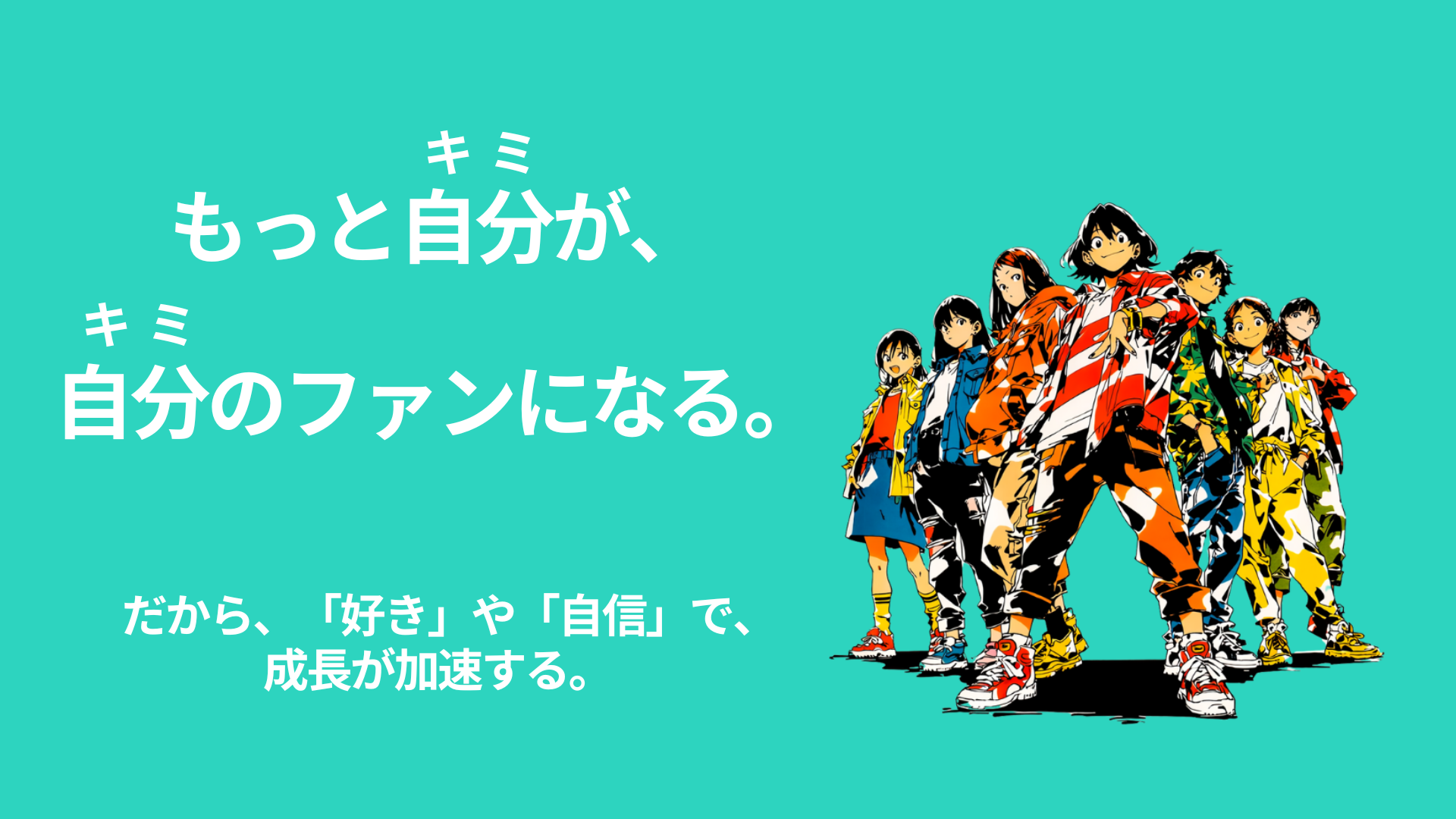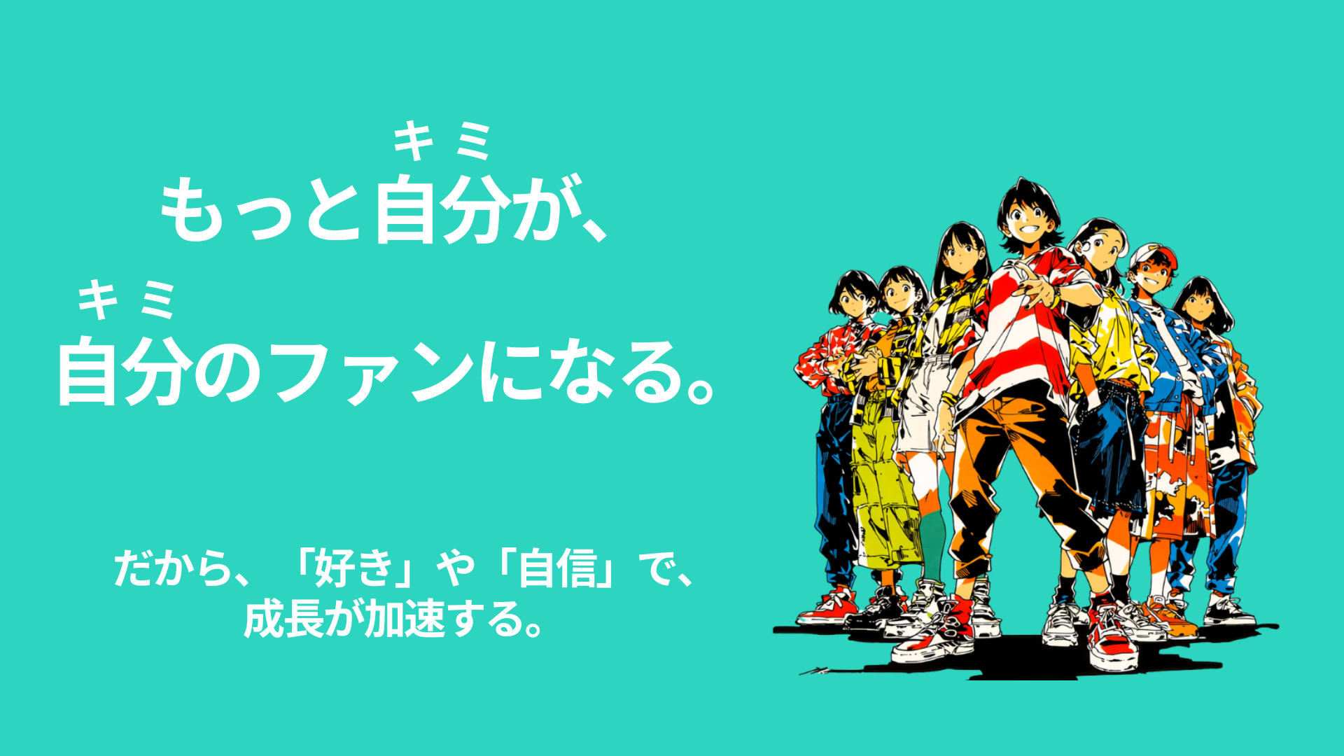 「もっと自分(キミ)が、自分(キミ)のファンになる。だから、『好き』や『自信』で、成長が加速する。」